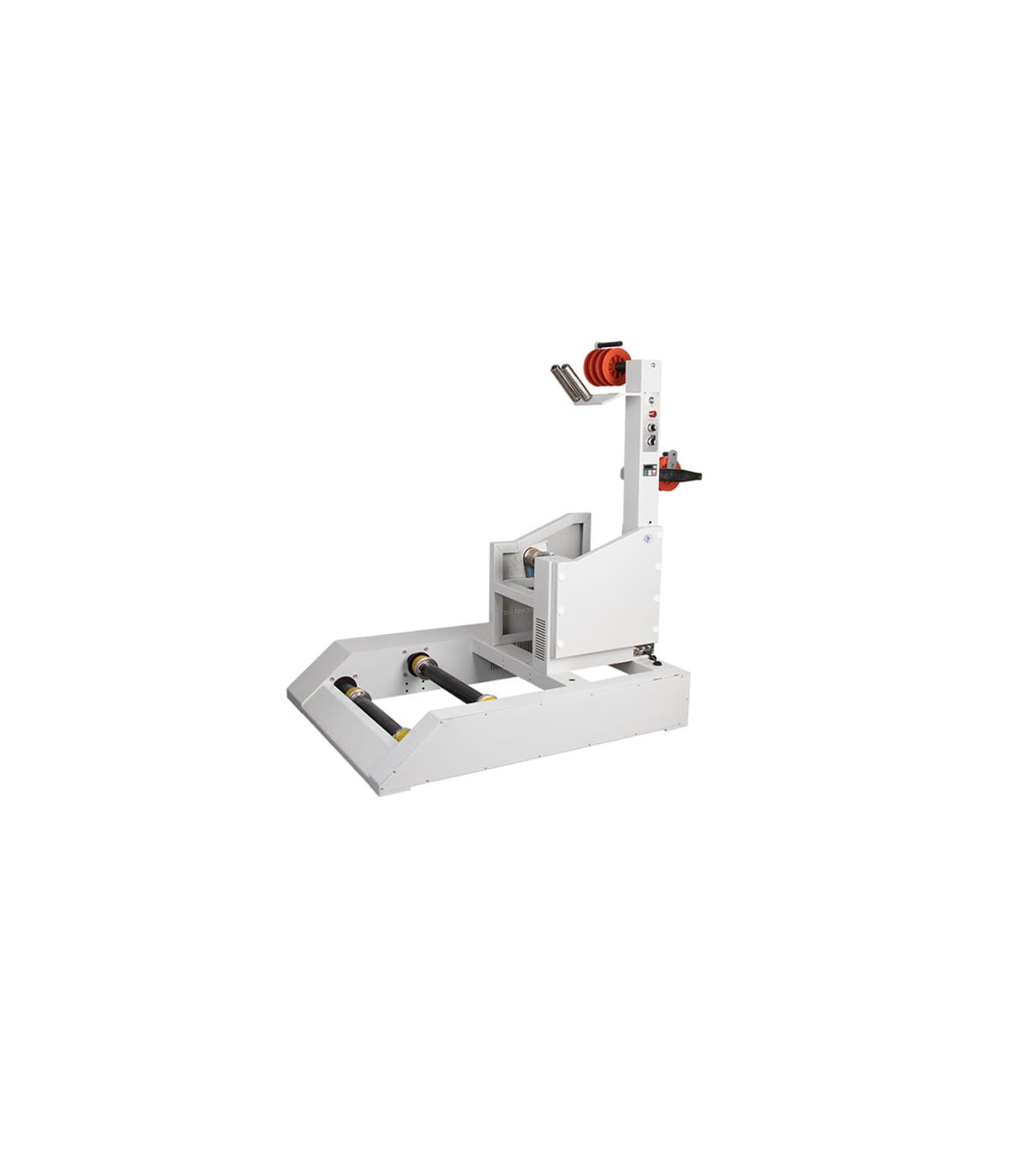 Die Kabelrolle wird auf der zentralen Welle der Maschine platziert, innerhalb des angegebenen Durchmesserbereichs (350 - 800 mm). Das System ist für große Rollen und Breiten bis zum angegebenen Maß ausgelegt. Das Modell RBEW14A unterstützt insbesondere Rollen mit einer Breite von bis zu 680 mm.