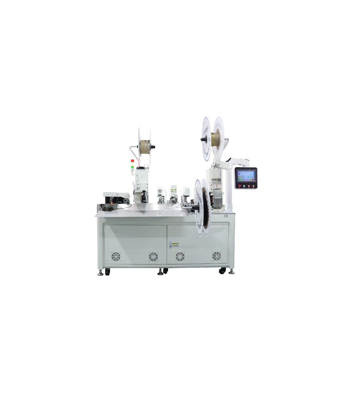 Automatische Crimpmaschine für doppelseitige Anschlüsse und automatisches Einführen von Schrumpfschläuchen (0,5 – 10 mm)