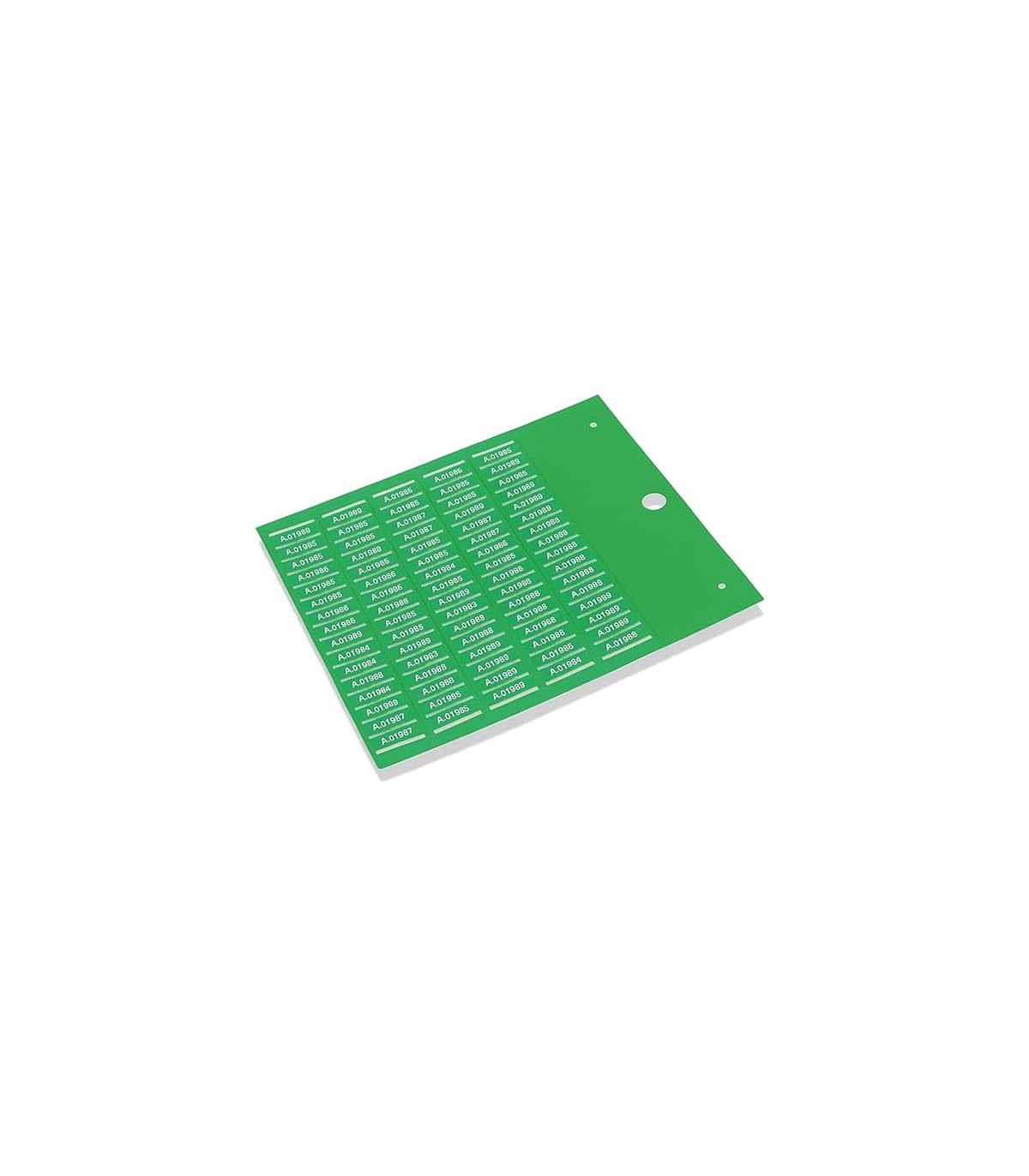 The markers are supplied in pre-cut sheets. Each marker is attached to a stem: when needed, simply detach the stem to obtain the marker ready for use. The rigid PVC material ensures that the marker remains legible and stable even in environments exposed to vibration, dust, oils, humidity or harsh conditions, guaranteeing long-term marking durability.