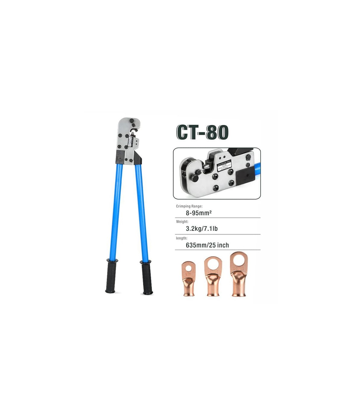 Crimping Range: 8 to 80 mm² (AWG 8-3/0)