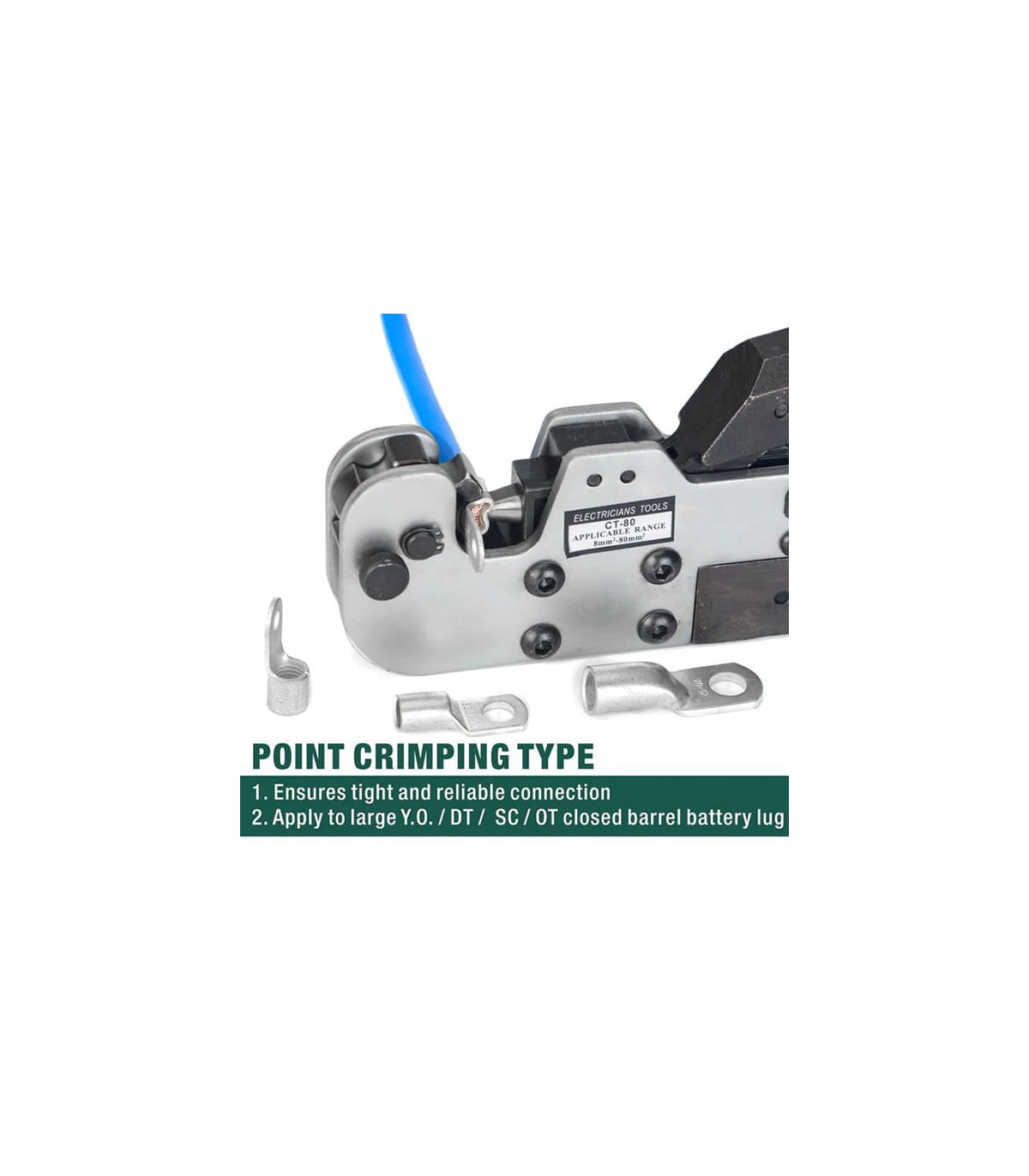 Rotating and Adjustable Dies: The CT-80 pliers feature rotating teeth that allow it to adapt to different terminal sizes, making it versatile for a variety of applications.