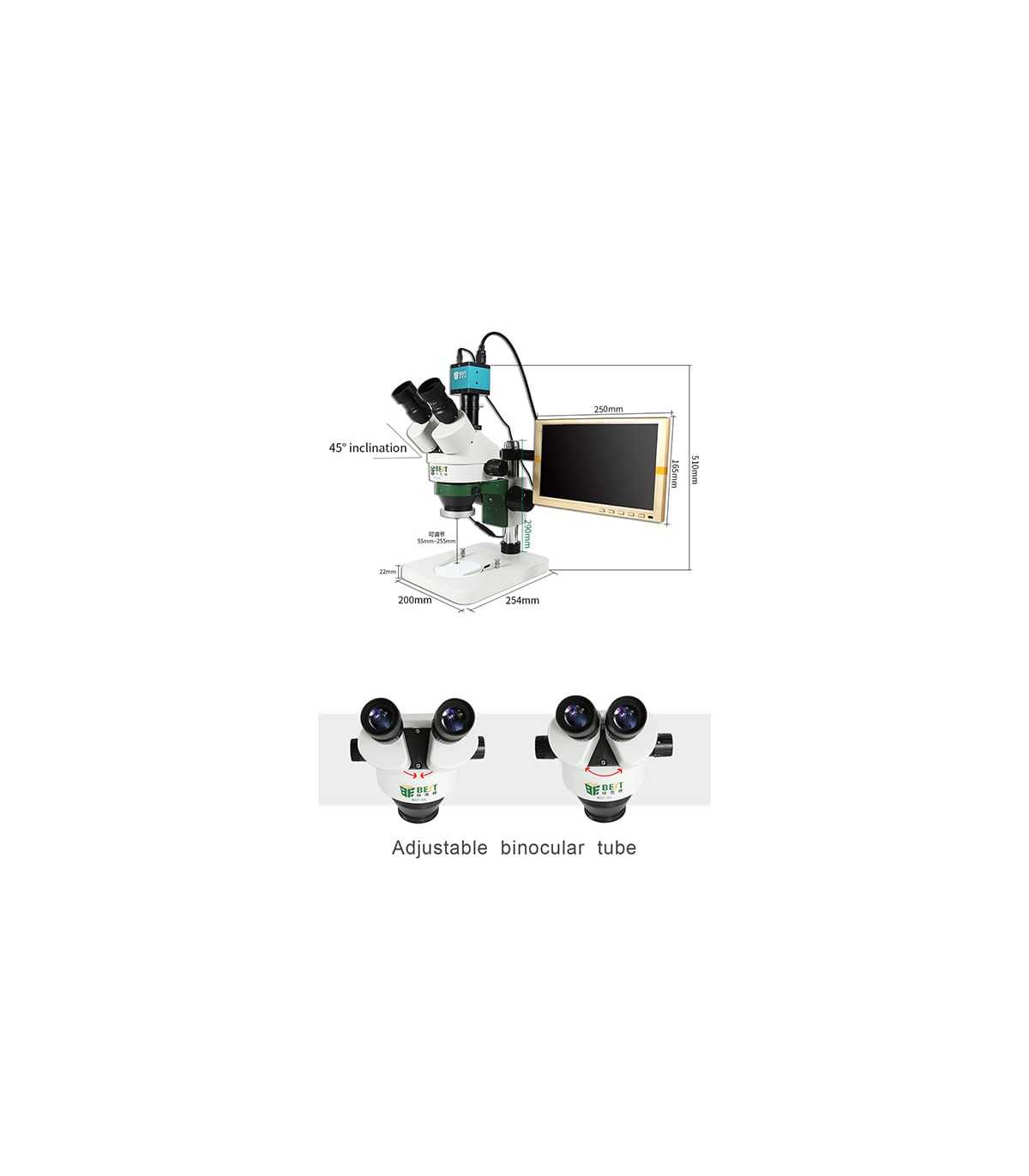 Eyepiece holder: inclination of 45 °, horizontal rotation of 360 ° step 55-75 mm