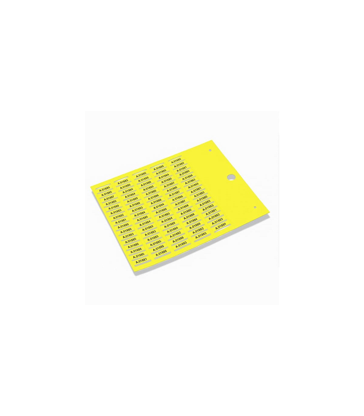 Las etiquetas se suministran en hojas precortadas. Cada etiqueta está unida a un tallo: basta con separarlo para obtener la etiqueta lista para usar. El PVC rígido garantiza que la etiqueta permanezca legible y estable incluso en entornos con vibraciones, polvo, aceites, humedad o condiciones difíciles.