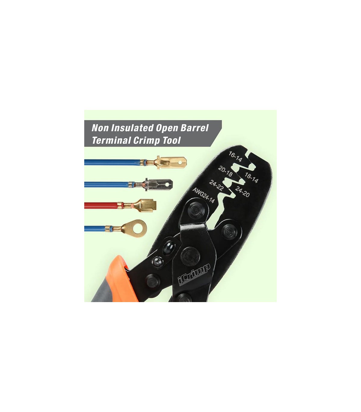 Tipo de terminales: open barrel no aislados, 5 rangos de crimpado dedicados