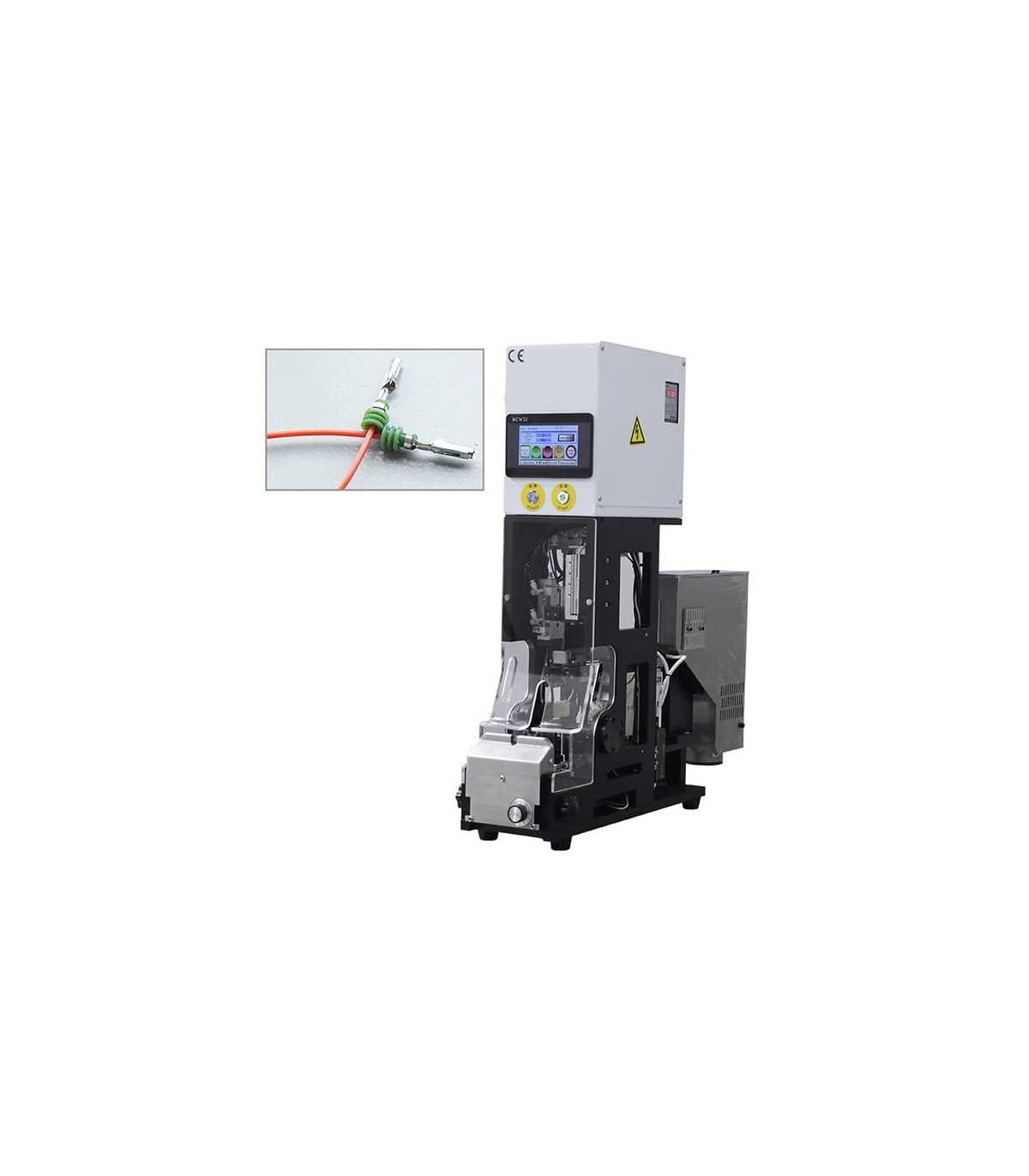 Máquina automática para engarzar caucho en cable