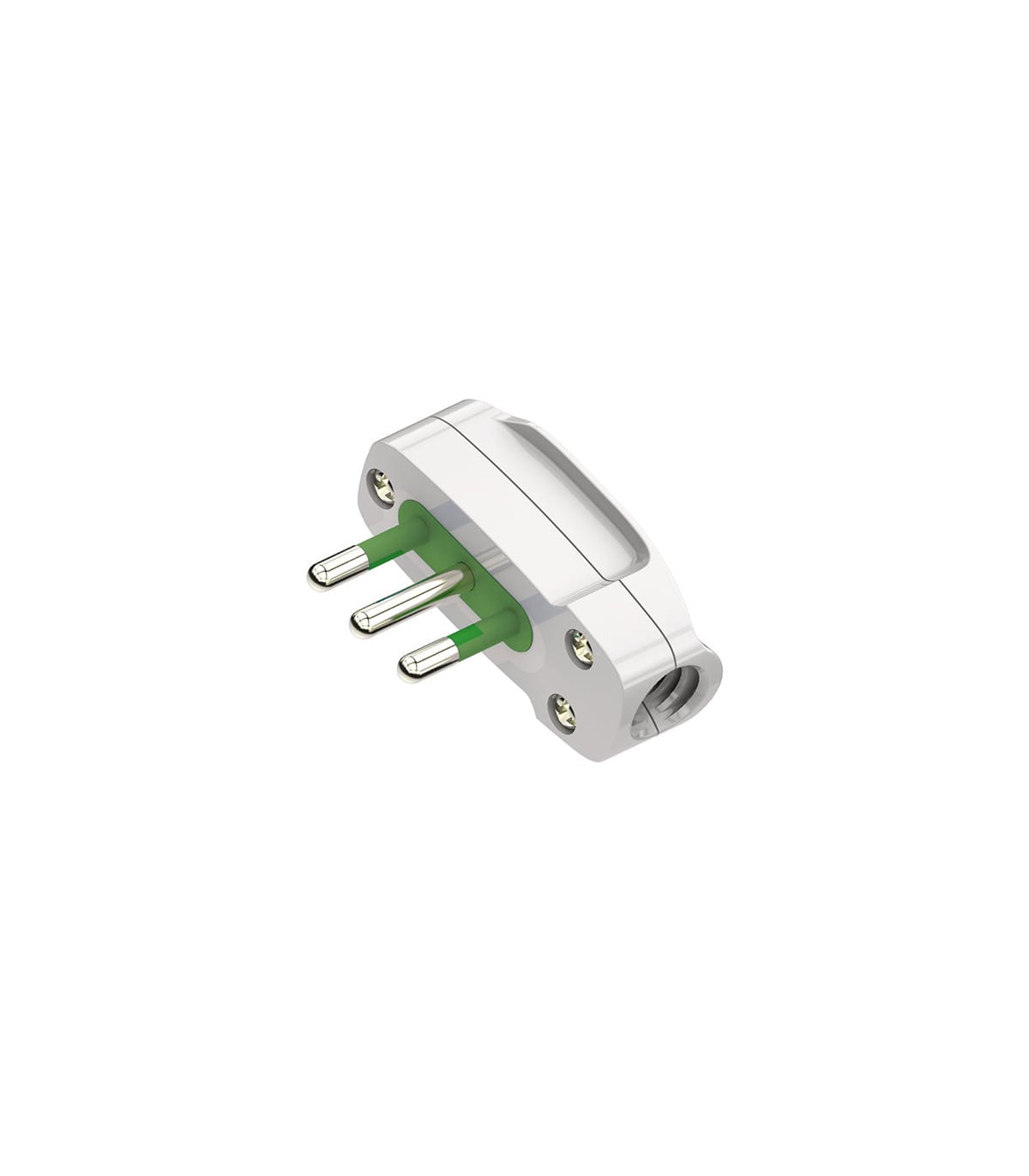 Bouchon italien Plate 2P+T 16A SPA17 Blanc Sortie de câble à 90°