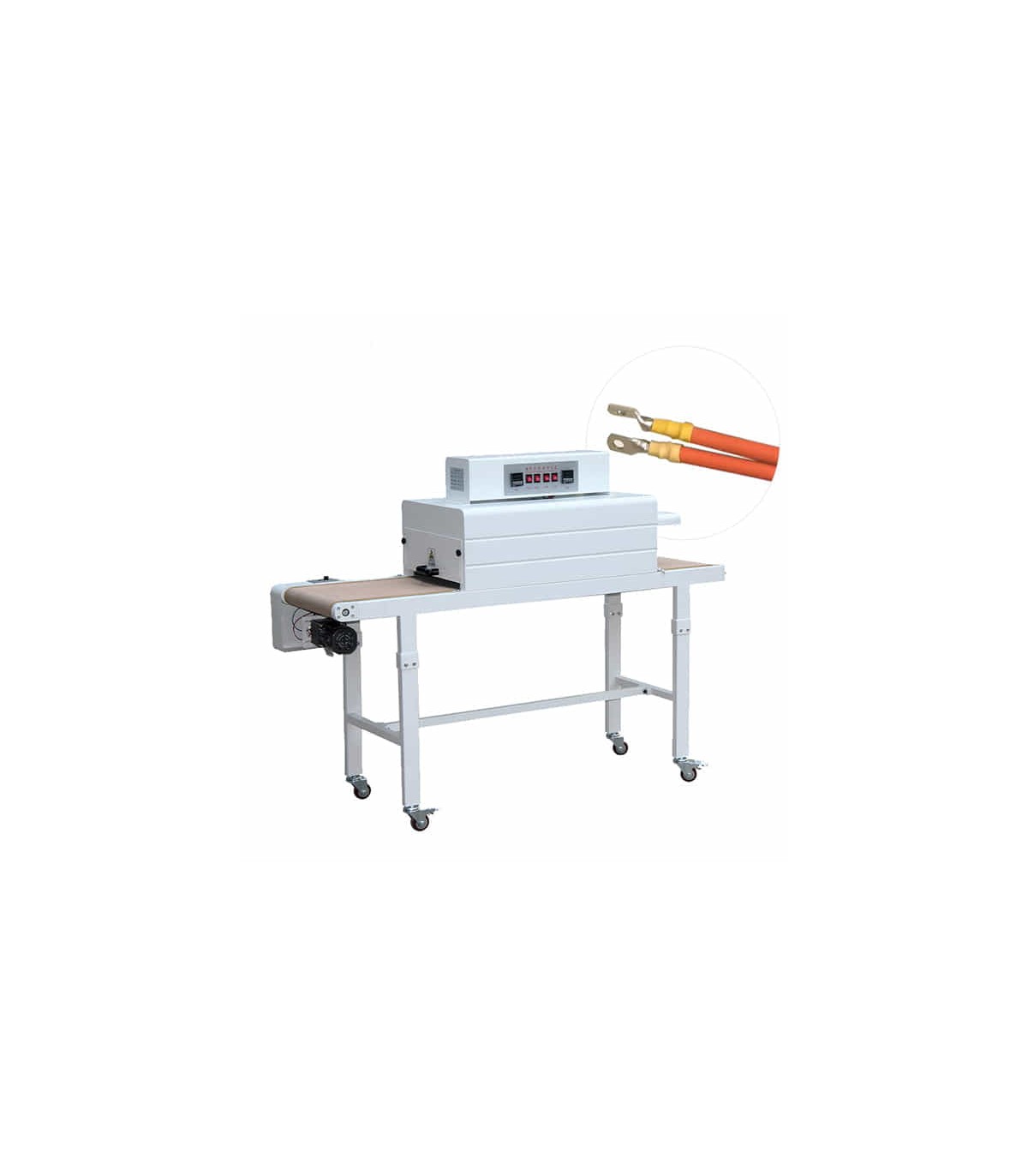 Le système à tunnel chauffant avec bande transporteuse permet un processus continu, assurant le passage automatique des câbles dans la zone de chauffage. Cela garantit une rétraction homogène sur toute la surface, en évitant les déformations ou les surchauffes localisées.